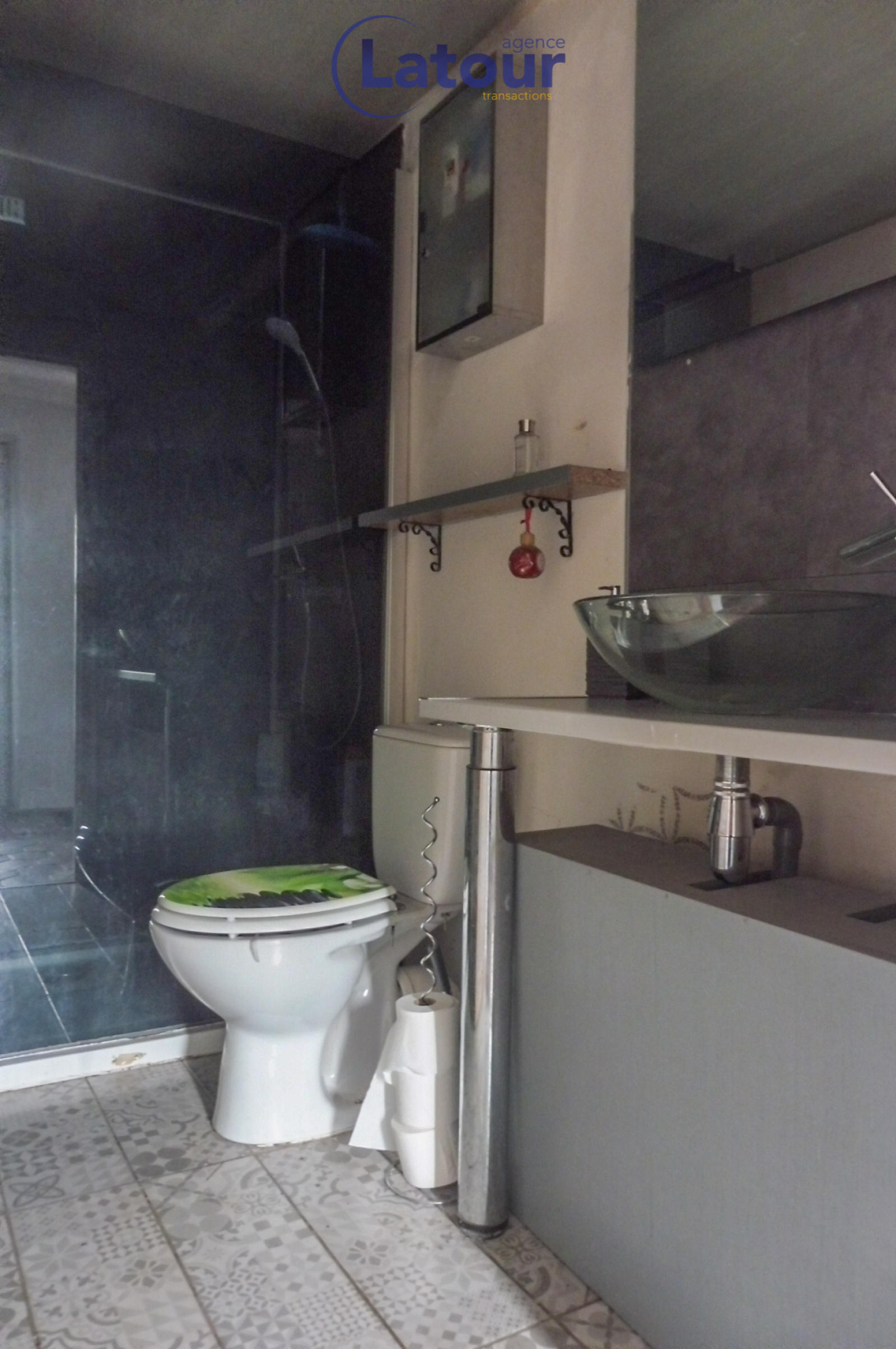 RDC : entrée sur séjour, salon avec cheminée, cuisine aménagée avec cheminée, salle d'eau avec wc.