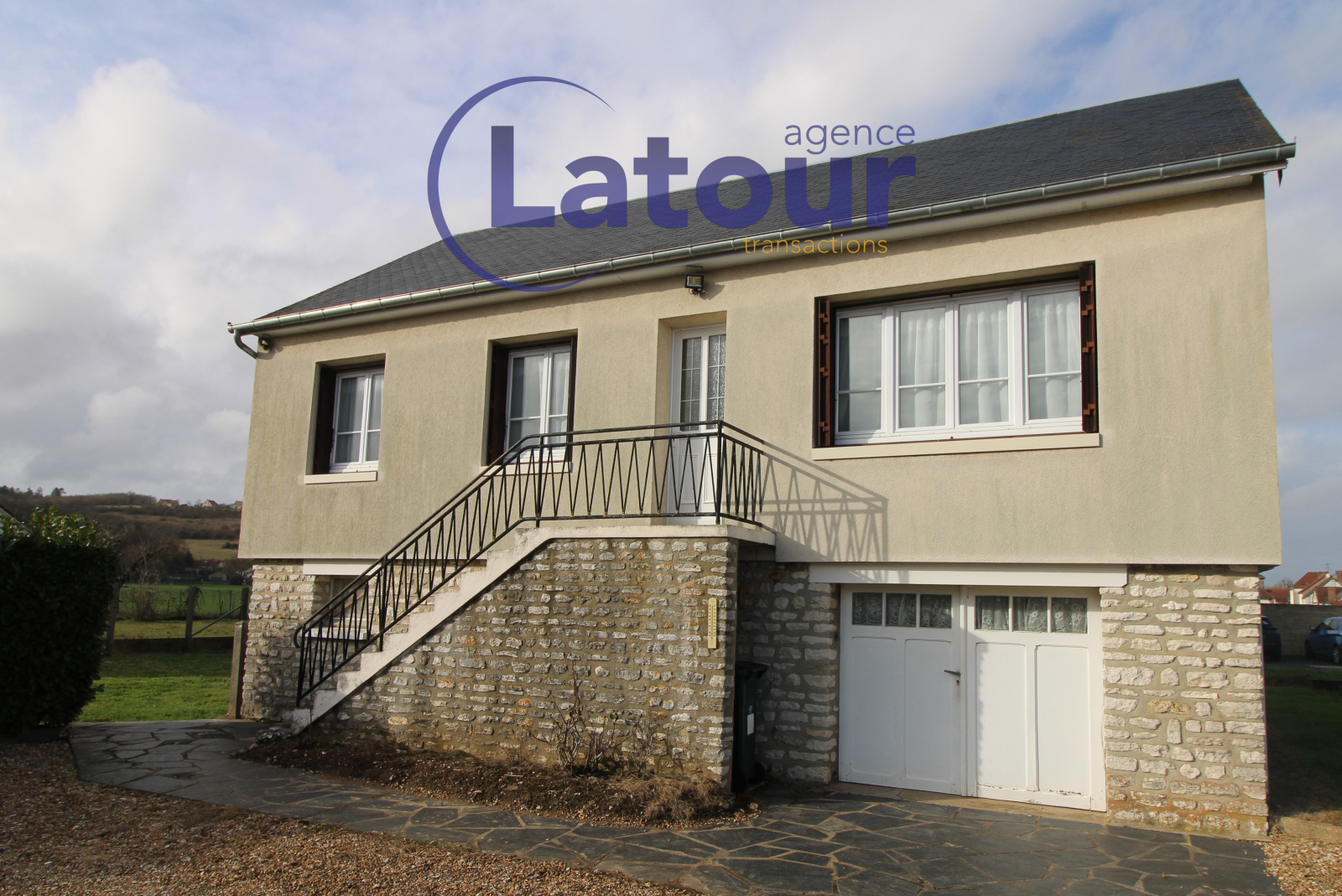 Garennes-sur-Eure (27780)Proximité de la gare de BUEIL, pavillon édifié sur sous-sol total divisé en garage, cave, et une pièce aménagée.
