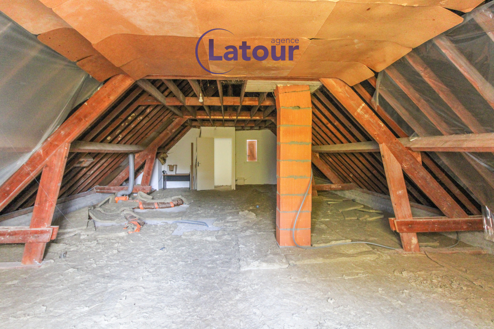 Beau grenier aménageable de 65 m² env. Sous-sol : garage deux voitures, cellier, bureau.