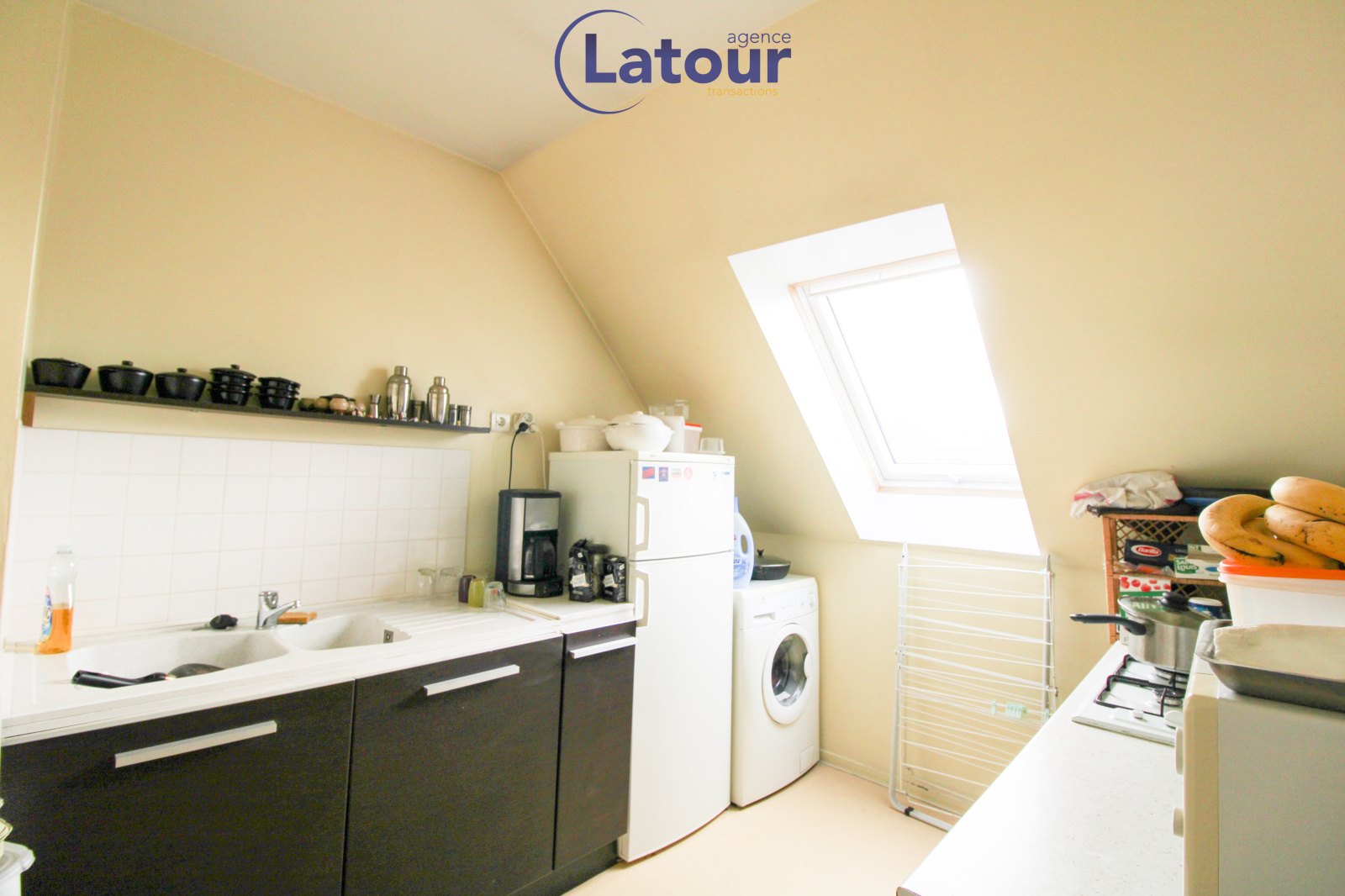 Séjour av.placards, cuisine aménagée, débarras, chambre, salle d'eau. Cave.