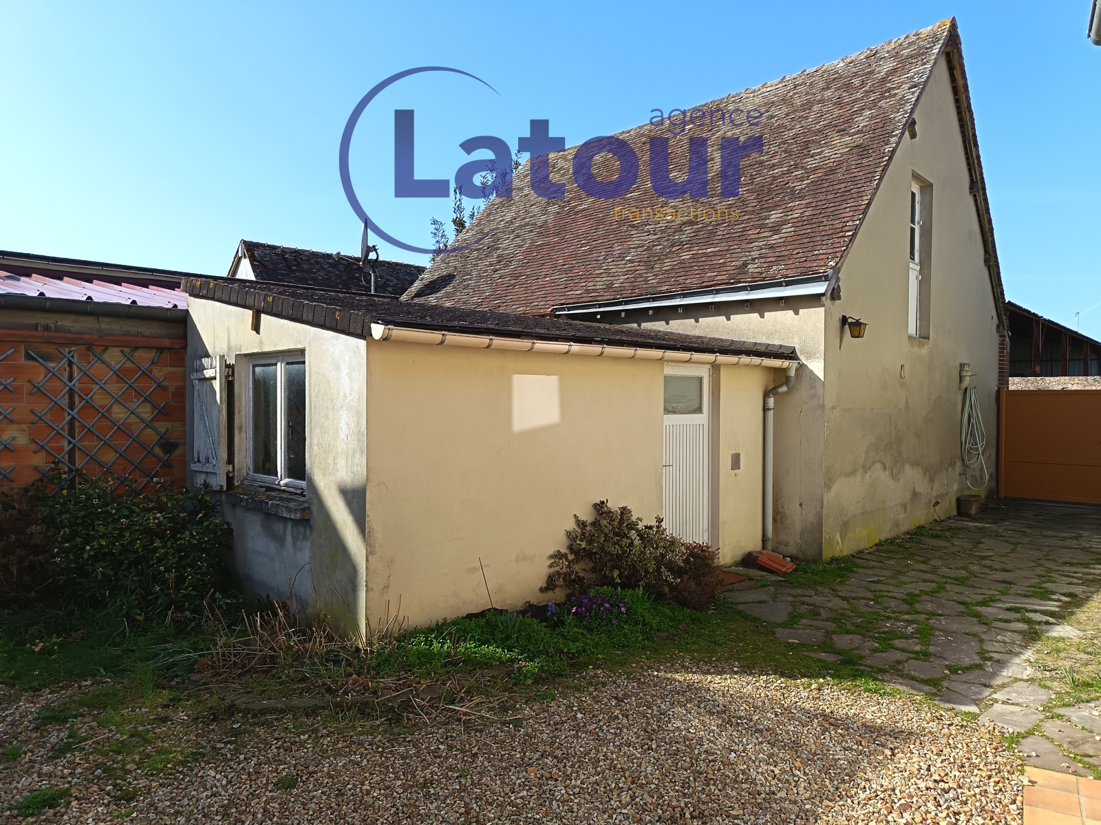 Atelier. Garage avec une chambre aménagée au dessus idéal pour un bureau ou une chambre d'amis.