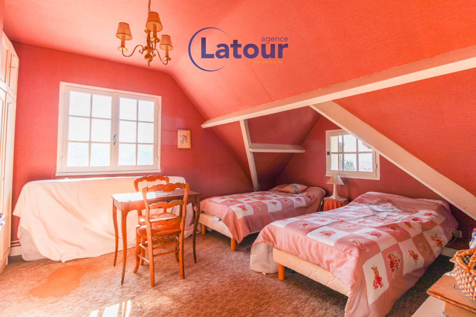 A l'étage: palier, quatre chambres, salle de bains, wc.