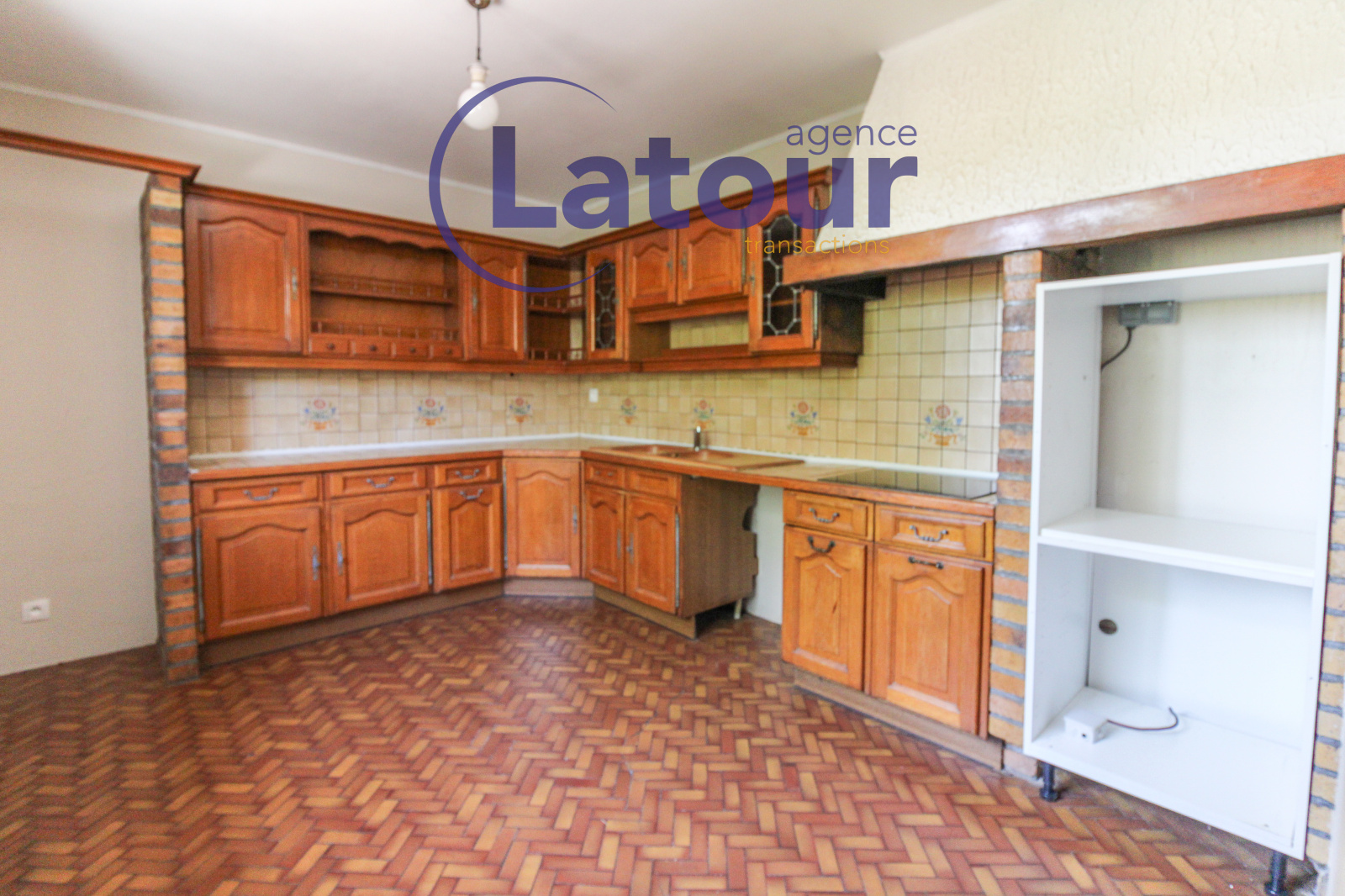 Vaste pavillon familial comprenant entrée, séjour-salon avec cheminée donnant sur grande terrasse, cuisine aménagée, 2 chambres, salle de bains, WC.