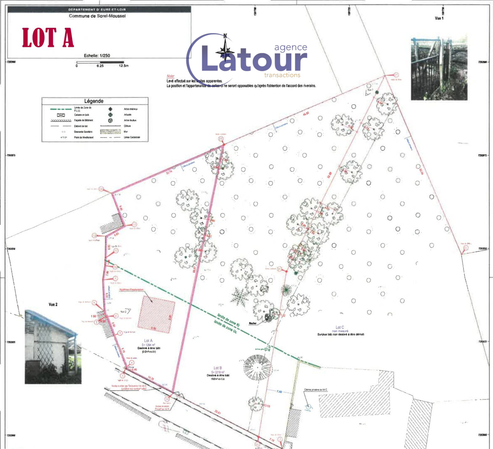 TERRAIN A BATIR de 1294m2 dont 512m2 en zone constructible et le reste en zone naturelle.