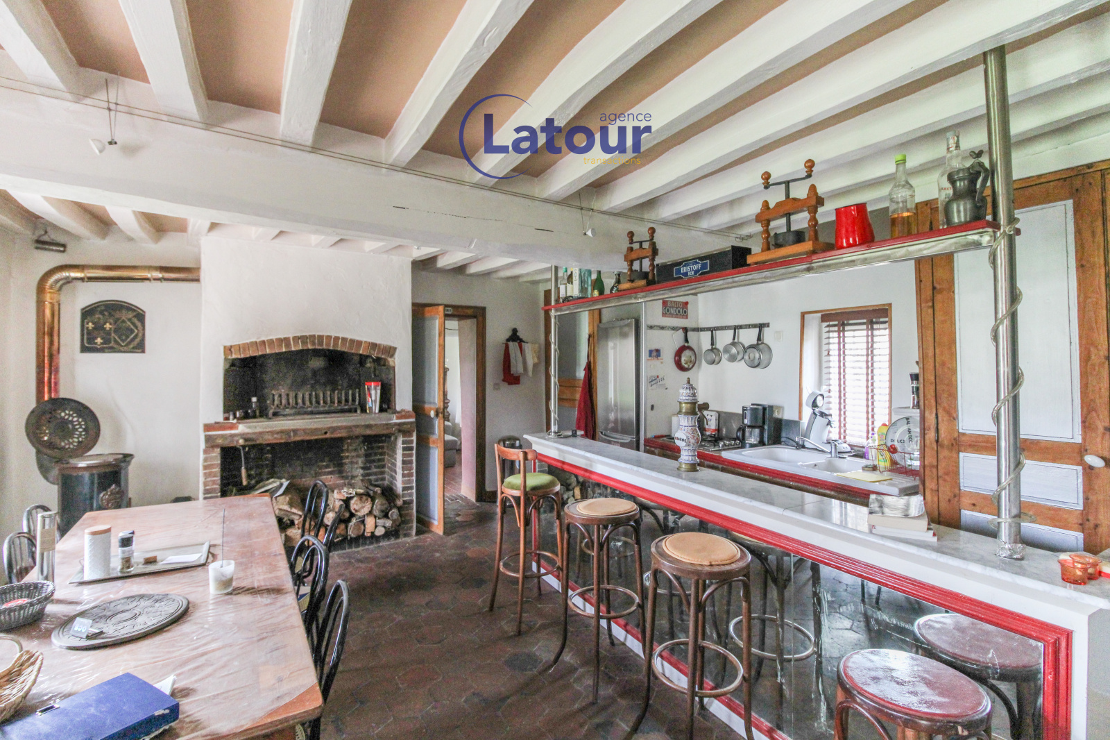 Salon-sajour, cuisine aménagée et équipée avec salle à manger, une chambre, dégagement avec une salle d'eau, un wc et un accès aux combles aménageables.